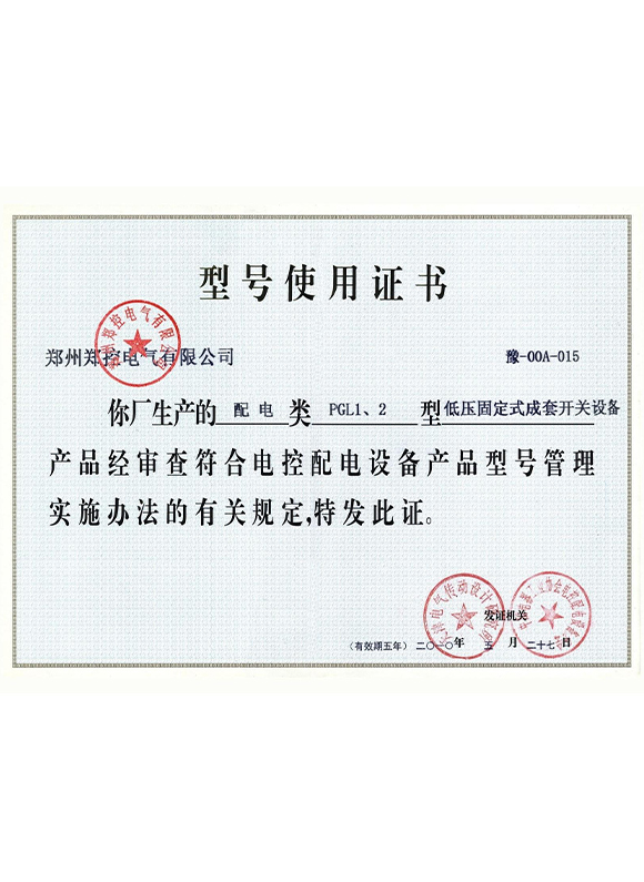 PGL model usage certificate